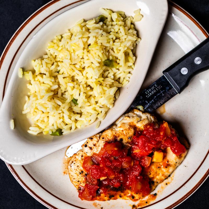 Served with choice of Cup of Soup or Side Salad, Loaf of Bread, and choice of French fries, Gems, Rice Pilaf, or Mashed Potatoes unless otherwise indicated. Upgrade to Sweet Potato Crisscuts or Onion Petals +$2.99 | Add a trip through our famous Soup and Salad Bar to any menu item on this page +$6.99